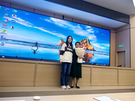 会后,员工代表向雷老师献上鲜花表达崇高敬意。本次讲座由学院副经理邓福成主持,辅导员向云彬和全院员工参加了本次活动。