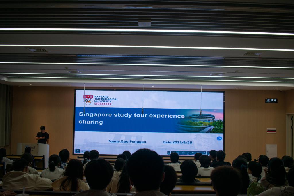 第二板块的留学分享环节,核心聚焦于国际视野的培育与拓展。曾在新加坡南洋理工大学游学的机械工程学院的研究生郭鹏高学长,结合新加坡“多语言融合”独特的社会文化,项目制课程展开论述。在分享过程中,他建议大家进一步提升自身的语言能力和跨文化适应能力,为未来的国际交流与合作奠定坚实的基础。