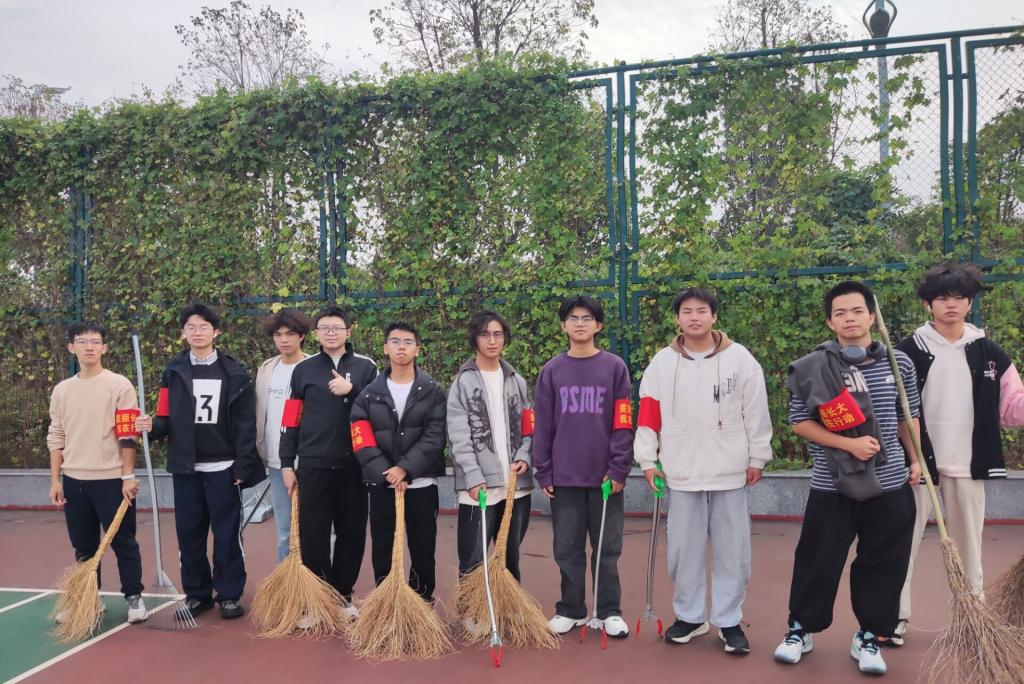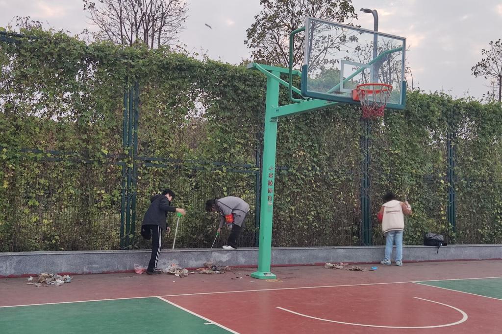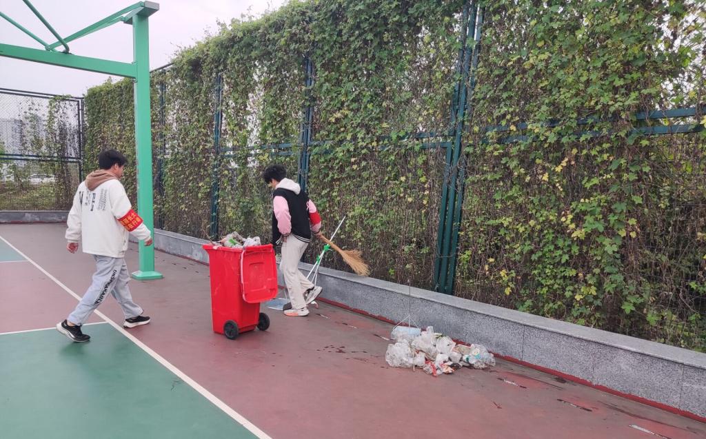 公司志愿者们身着红袖章,拿着劳动工具有计划、有组织地参与到学院劳动区域垃圾清扫中。同学们在清扫运动场地之余,还重点清扫了运动场与护栏的夹缝卫生死角。有的拿着耙子耙出夹缝中的大垃圾,有的用夹子夹出耙不出的小垃圾,有的用扫把将耙出的垃圾扫拢,有的同学拖垃圾桶、有的同学用撮箕把垃圾倒入垃圾桶。同学们分工合作,有条不紊、认真清扫每一个角落,让运动场焕然一新。
