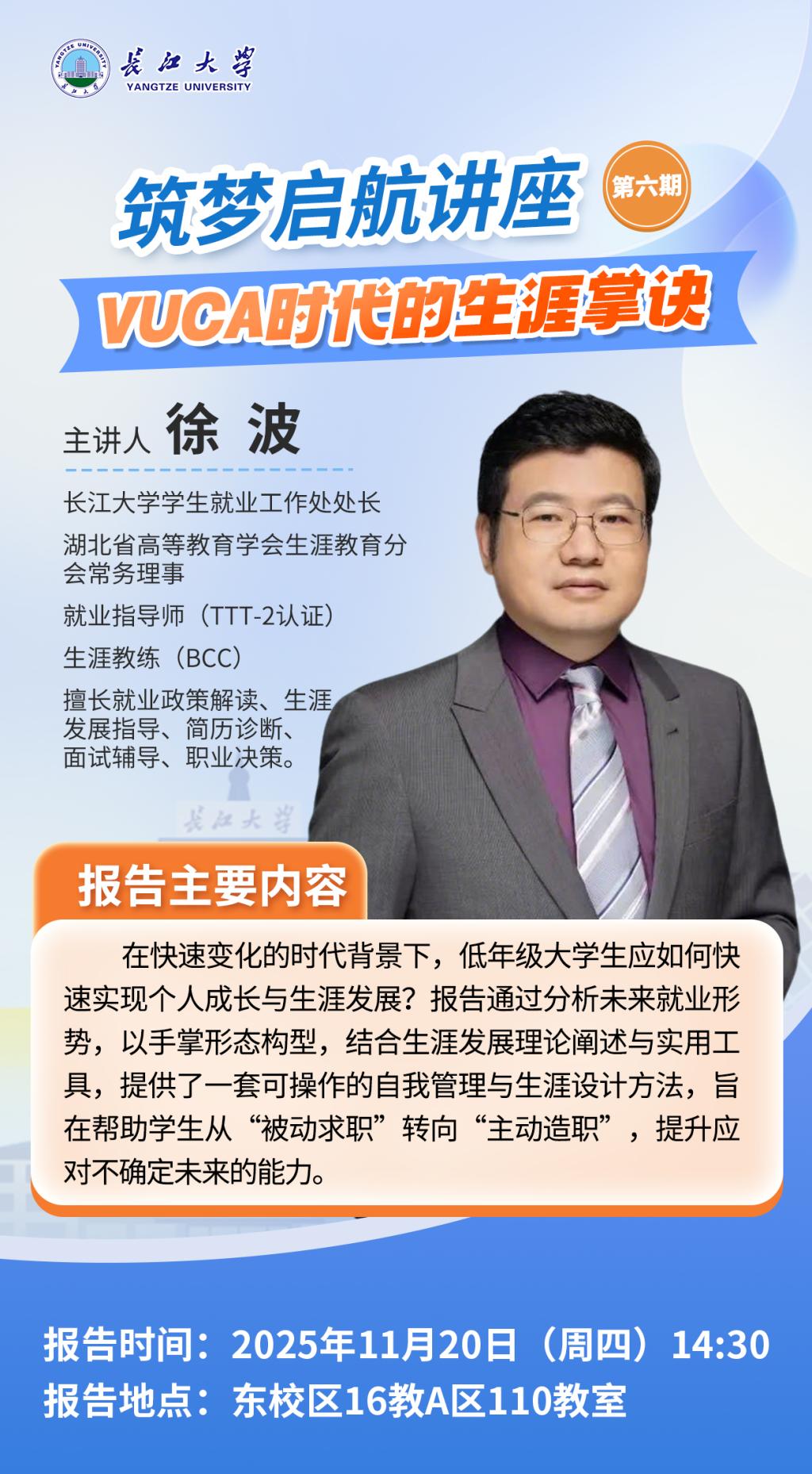 筑梦启航讲座(第六期):VUCA时代的生涯掌诀