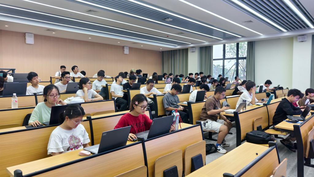 为了让同学们更好地掌握编程实操技能,靳老师精心设计了阶梯式实践任务。实践过程中,教室里键盘敲击声此起彼伏,同学们专注地编写代码。