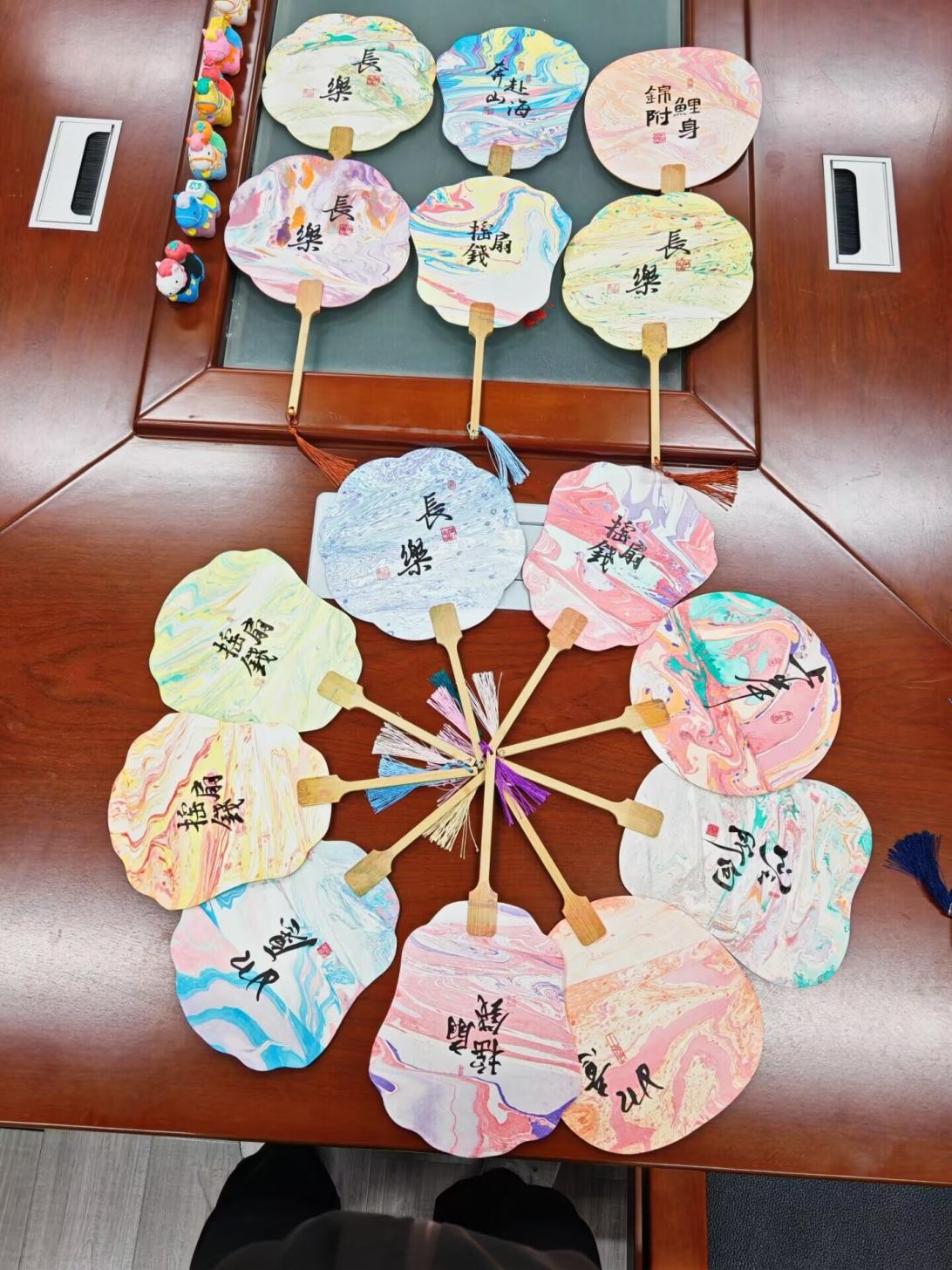 19时活动正式开始,工作人员讲解创作技巧后,同学们迅速投入创作。香囊区,大家挑选天然香料制作专属香氛;漂漆团扇区,巧用颜料晕染打造独特美感;石膏彩绘区,用画笔为小马赋予鲜活生命力,现场氛围专注愉悦。